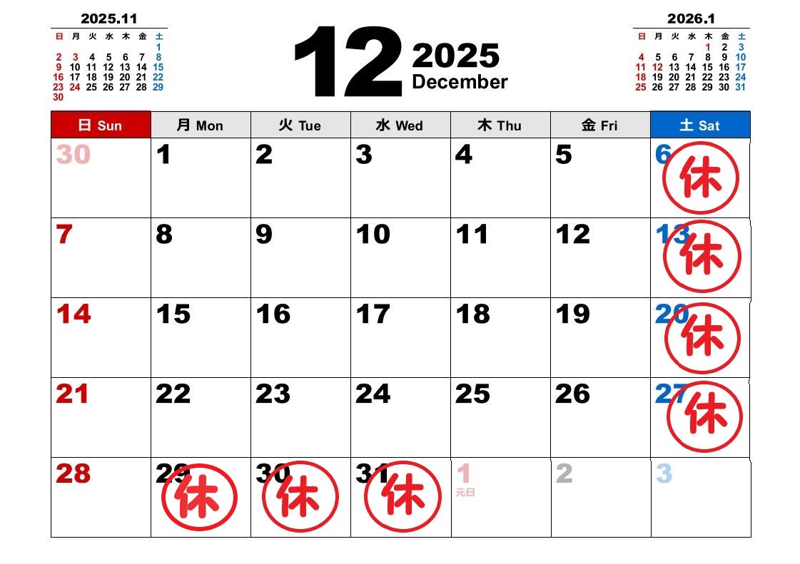 今月の営業日は下記のとおりになります、休業日には大変ご不便を おかけしますが、どうかご了承くださいますよう お願い申し上げます。