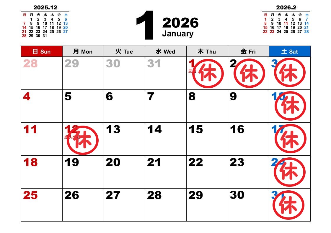 1月 営業日のご案内